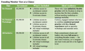 Created by the experts behind Breathe Meditation and Wellness, Breathe on Demand is our virtual home for mindful living – a space where you can access transformation practices anytime, anywhere. As a Founding Member, you’re not just purchasing access, you’re helping shape the future of how our community learns, heals, and grows together. Founding Member pricing is a one-tome investment that grants you lifetime access to your selected tier.